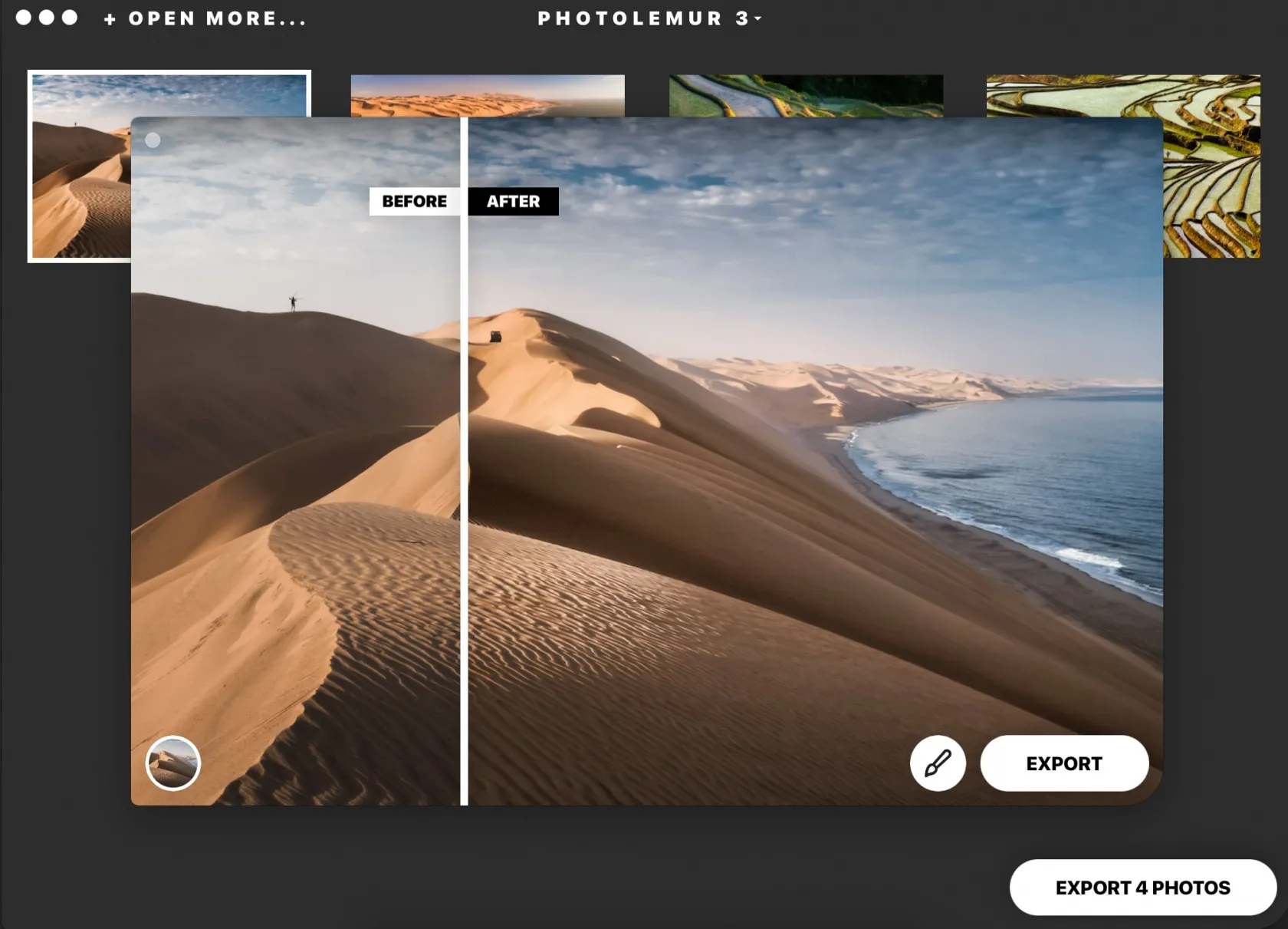 Another solution for quick and effective post-processing of your aerial shots is Photolemur 3. Designed in the Skylum AI Lab, Photolemur intelligently enhances images in the same way a professional photographer would, only much faster than with any standard editing software. Photolemur 3 only requires you to drag and drop an image. It takes care of the rest by automatically making pro-level adjustments within seconds.