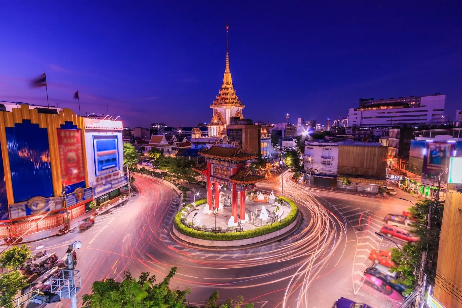 If you want to get an exciting aerial shot of the street, there’s car parking in front of the Gate of Yaowarat (Odeon Parking). It offers a breathtaking view from the top floor. Note that the top floor is usually crowded with photographers at sunset.
