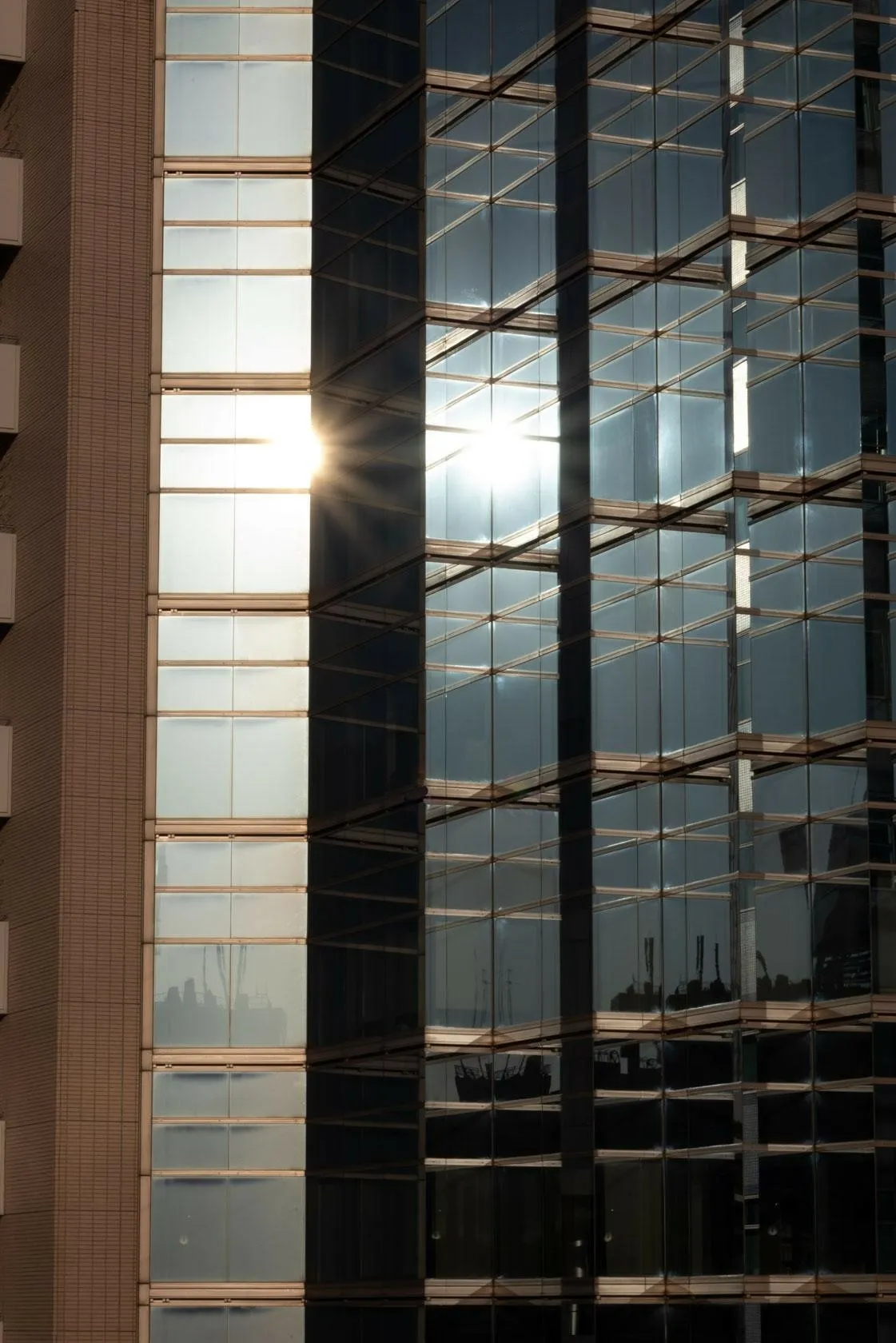 In this type of shooting, the light reflected from the glass of the building may cause a ghost flare.