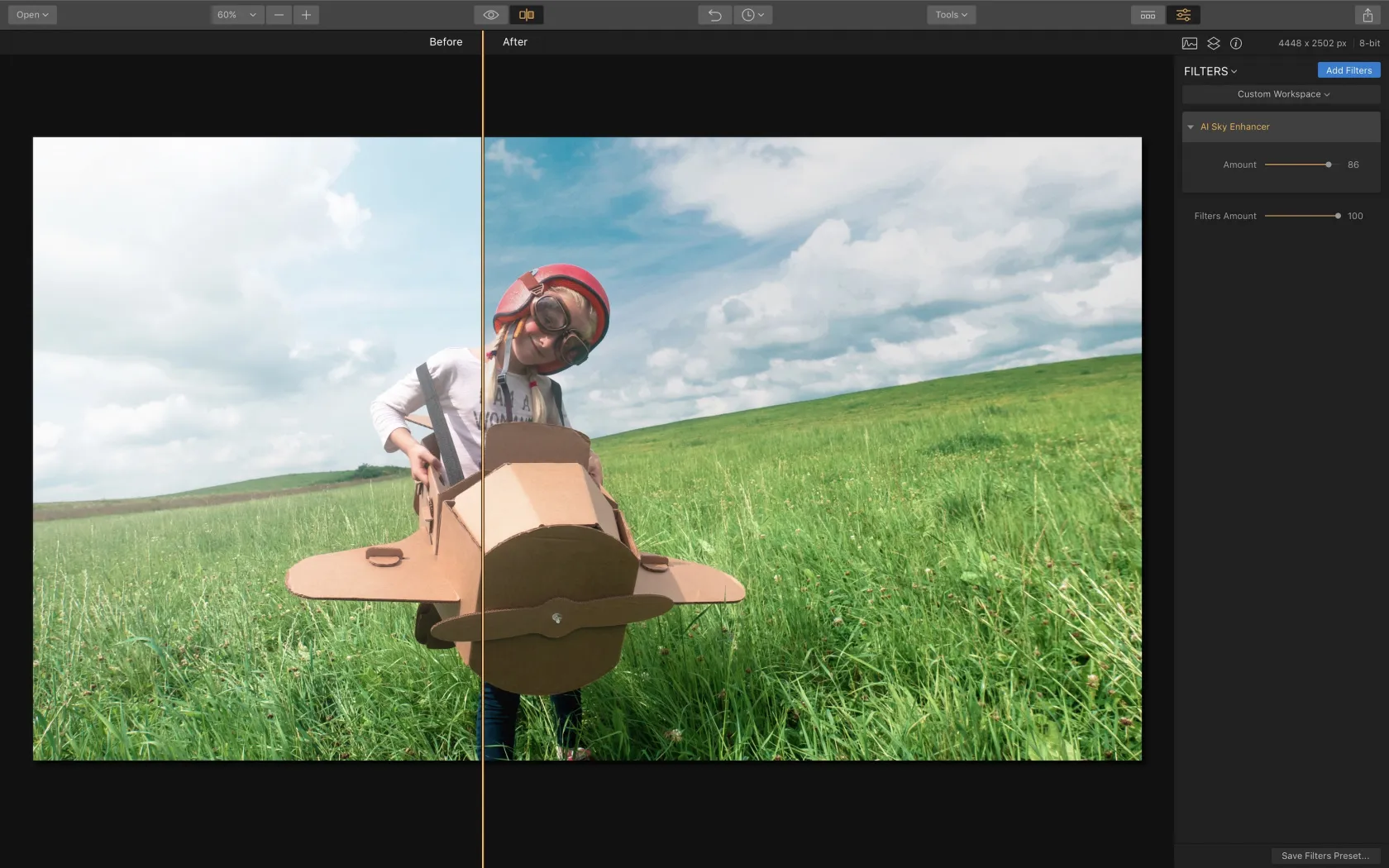 We call it the AI Sky Enhancer. Its key feature is an Artificial Intelligence technology. It’s powered by a deep neural network developed by Skylum’s very own AI Lab team.