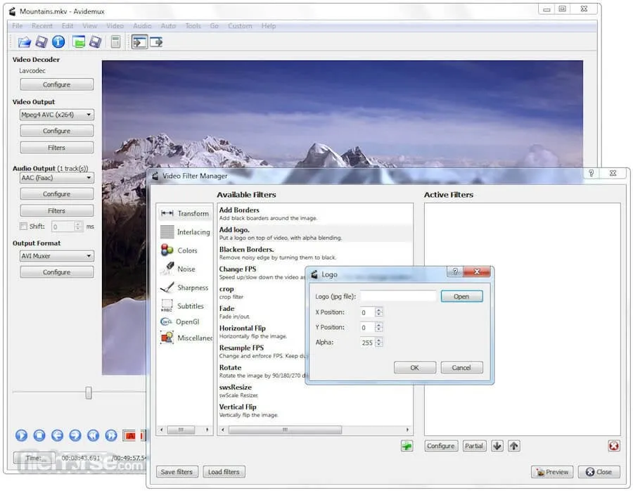 If you want a small tool that doesn’t have many functions or an intuitive interface but is designed for geeks, Avidemux is definitely your choice. With Avidemux, you can apply filters, encode your files, and cut their length. You can use Avidemux with these file formats: