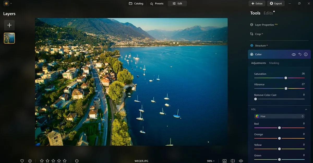 Once you’ve captured those gorgeous aerial shots, you’ll want to make them shine. That’s where Luminar Neo comes in—a beginner-friendly photo editing tool that’s perfect for drone photography. Spending hours tweaking drone footage gets a lot easier with this editor’s AI-powered tools, like Sky Replacement and Enhance AI. These features quickly turn ordinary shots into stunning images without hassle. For instance, a slightly dull sunset captured with a DJI Mini 4K can be enhanced by using Luminar Neo’s Layer Masking to boost colors and add a dramatic sky, without losing a natural look.