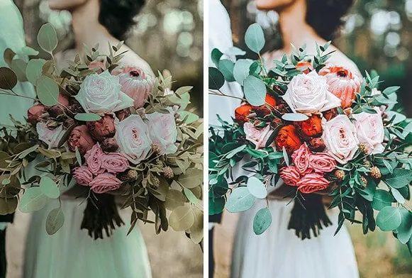A vibrant preset for bright brides. Here the greens look a little juicier and richer in color, and a distinctive sheen has been added to the skin. This is a classic option that won’t leave anyone indifferent and will come in handy.