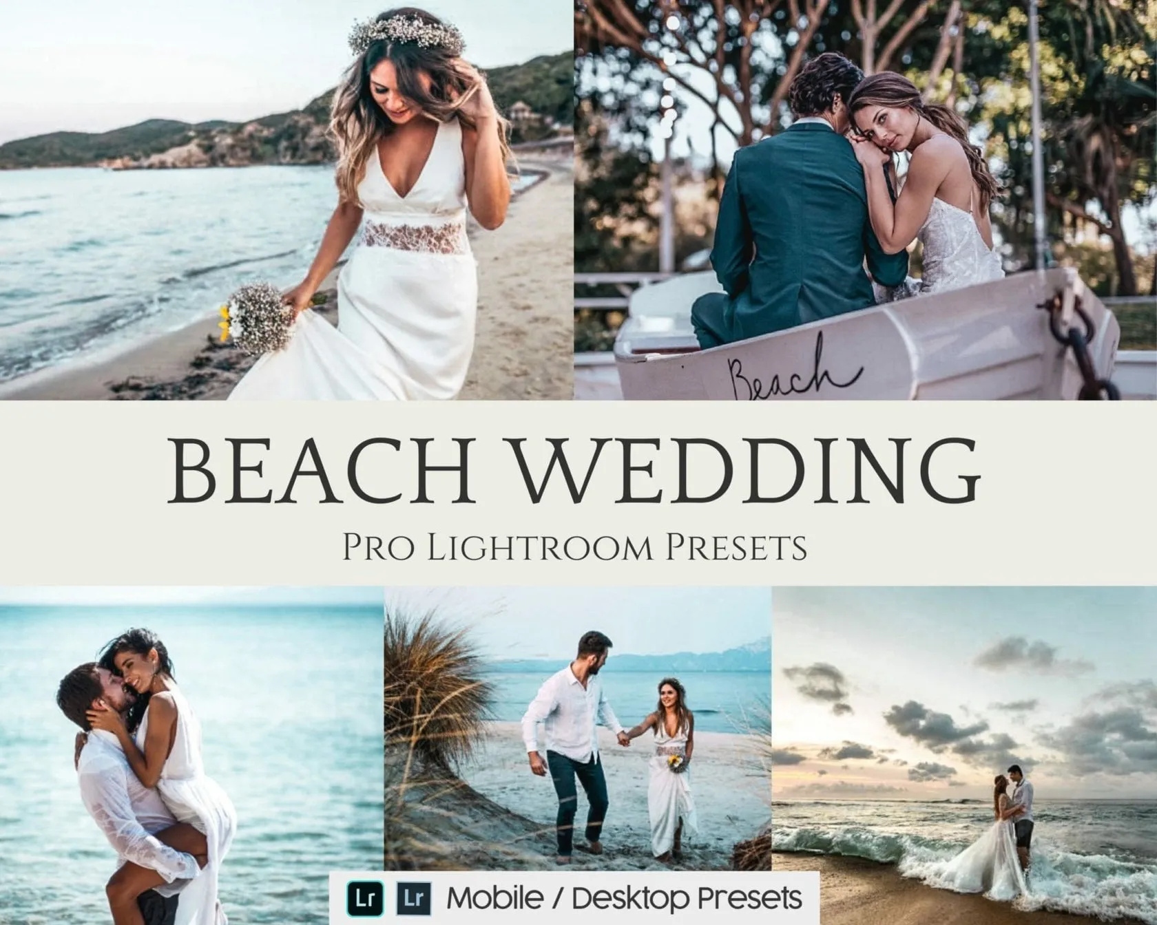 Have the bride and groom decided to spend their main celebration on the beach? Then choose these particular settings for later processing of the shots in this collection of wedding photography Lightroom presets! Blue sky, soft pink flowers, white dress. The incredible lightness of the sea breeze for your magical wedding photos.