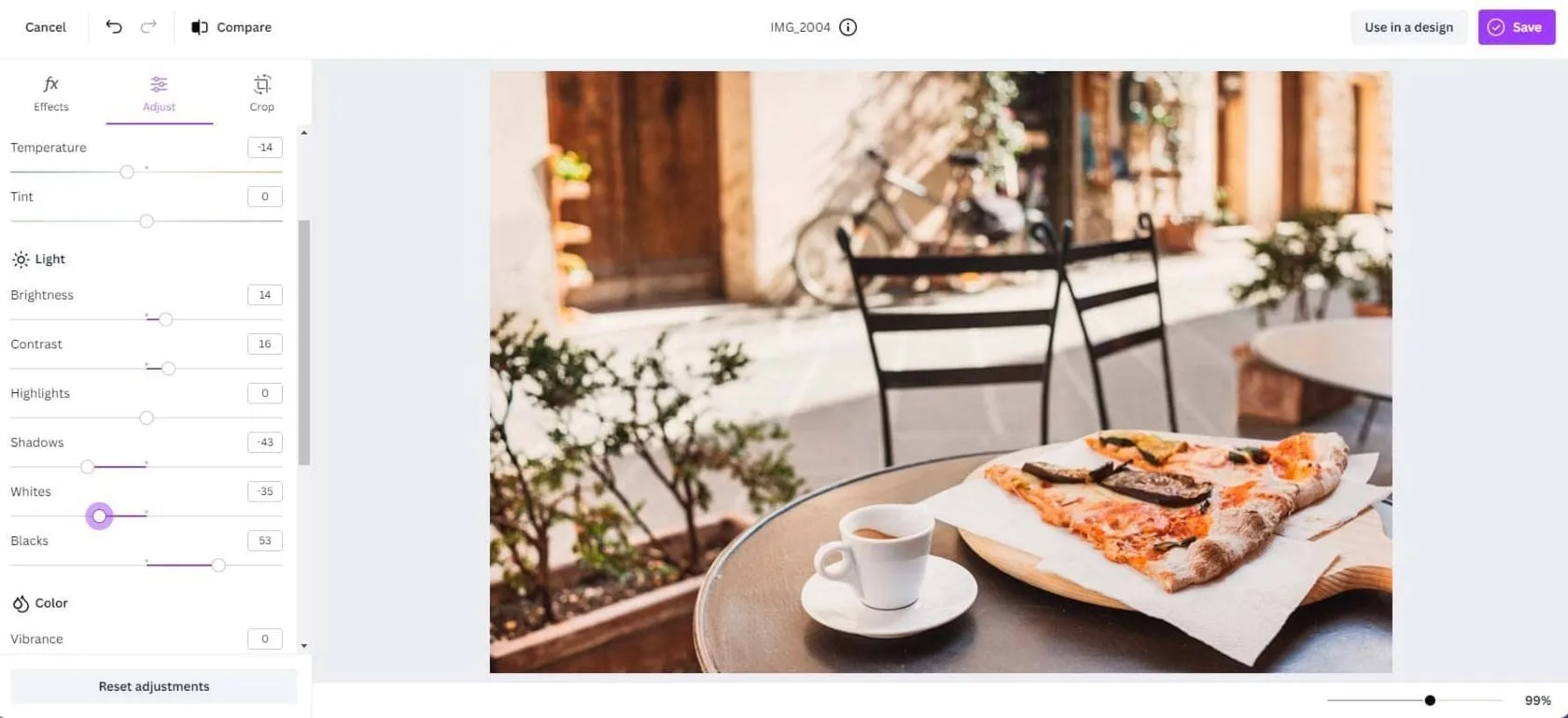 In Pixlr basic adjustments can be done quickly through its adjustments menu which has options such as crop, rotate, blur, etc. From the color fix tool, you can adjust the saturation, warmth, and hue of the picture on go.