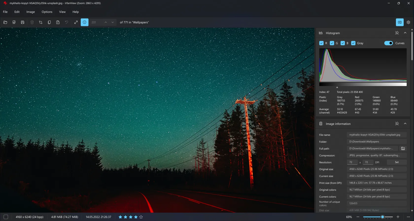 IrfanView is one of the best picture viewer software, a longtime favorite among Windows users, and for good reason. It’s ridiculously fast and opens almost any file format you throw at it. Despite its old-school interface, it has all the essentials: batch processing, slideshows, cropping, and format conversion.