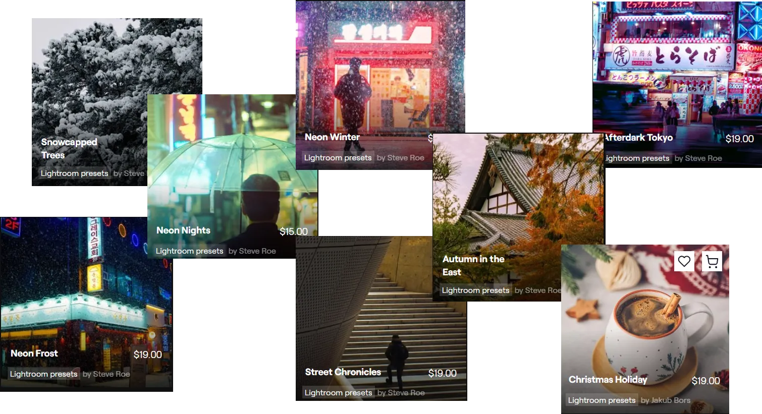 You can find many of these on platforms that offer Lightroom presets for purchase or free download.