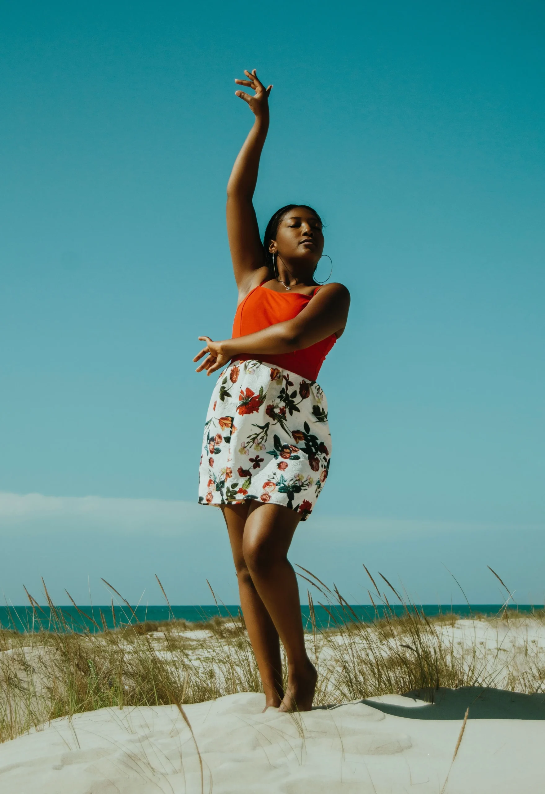 Poses don’t have to be static at all times. The movements will make the photos more dynamic and the pose less obtrusive. Posing while jumping is one of the most exciting. It may take several attempts of the model to get the shot, but it will be worthwhile if you do it right.