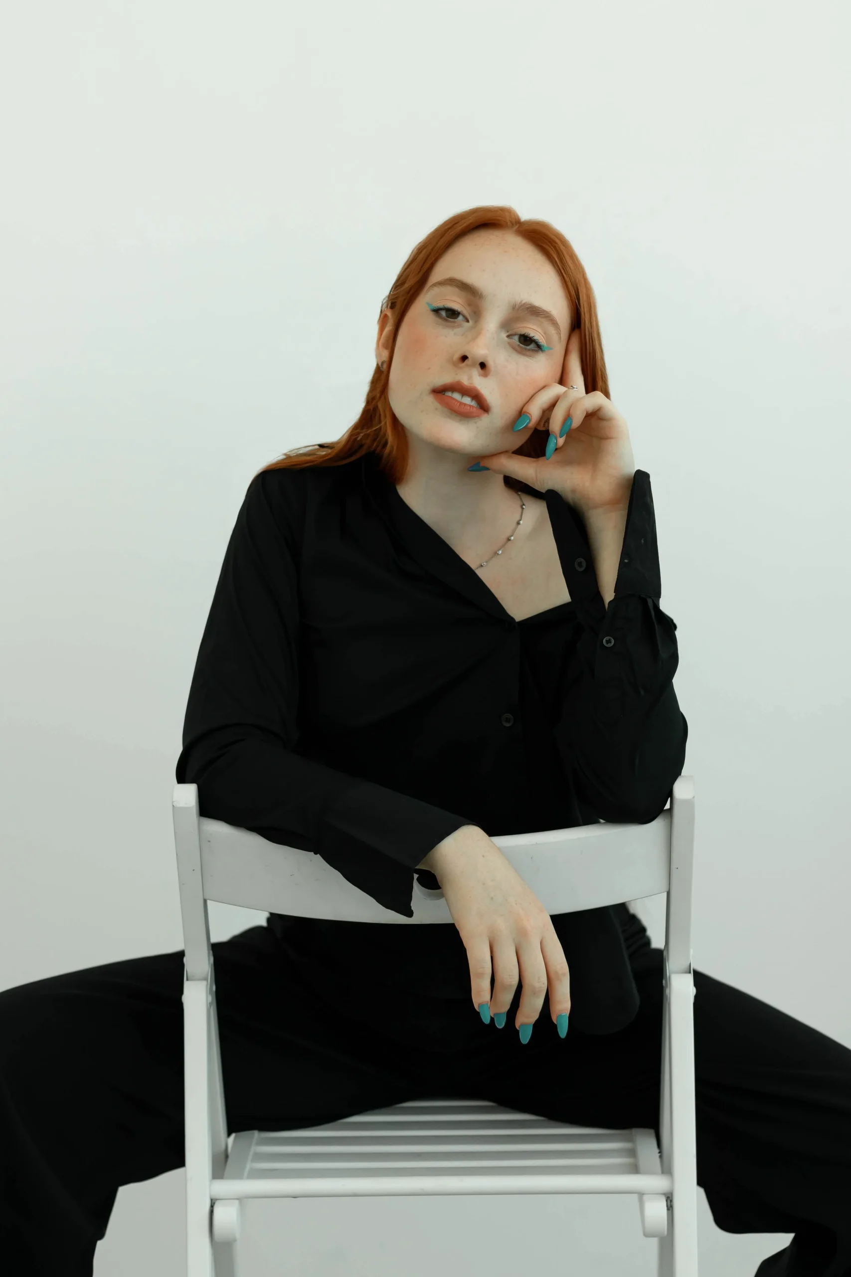The previous pose can be spiced up a bit by asking the model to sit on a chair. Shoot the subject from different angles to find the best possible model pictures poses.