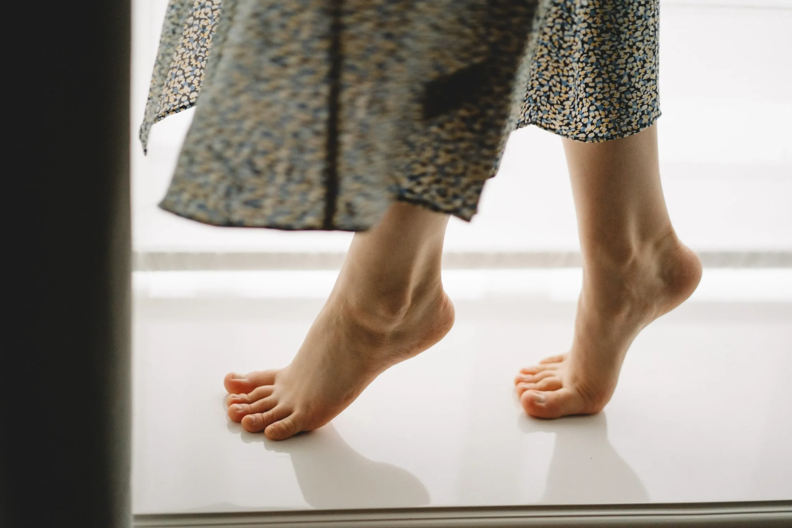 Ask the model to tiptoe in (if her shoes allow it) and you need to capture the moment at a short shutter speed. If the previous pose is not possible, you can ask the model to tiptoe with just one foot and play around.