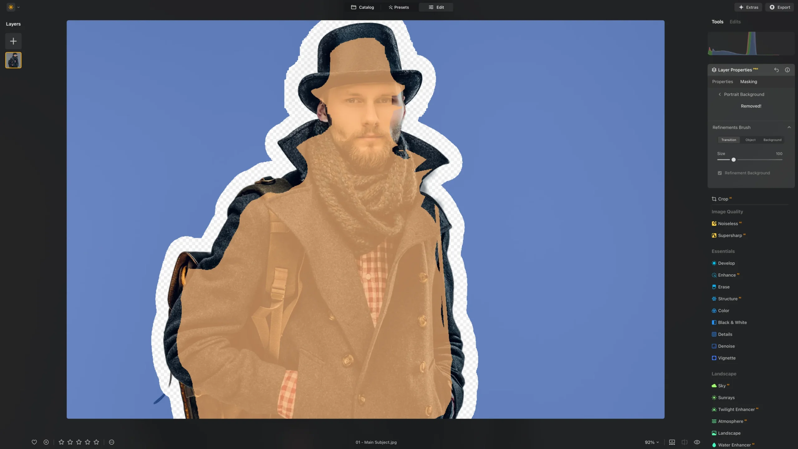 Luminar Neo, thanks to its powerful Portrait Background Removal and Background Removal AI tools, stands out as one of the best software to remove backgrounds from images.