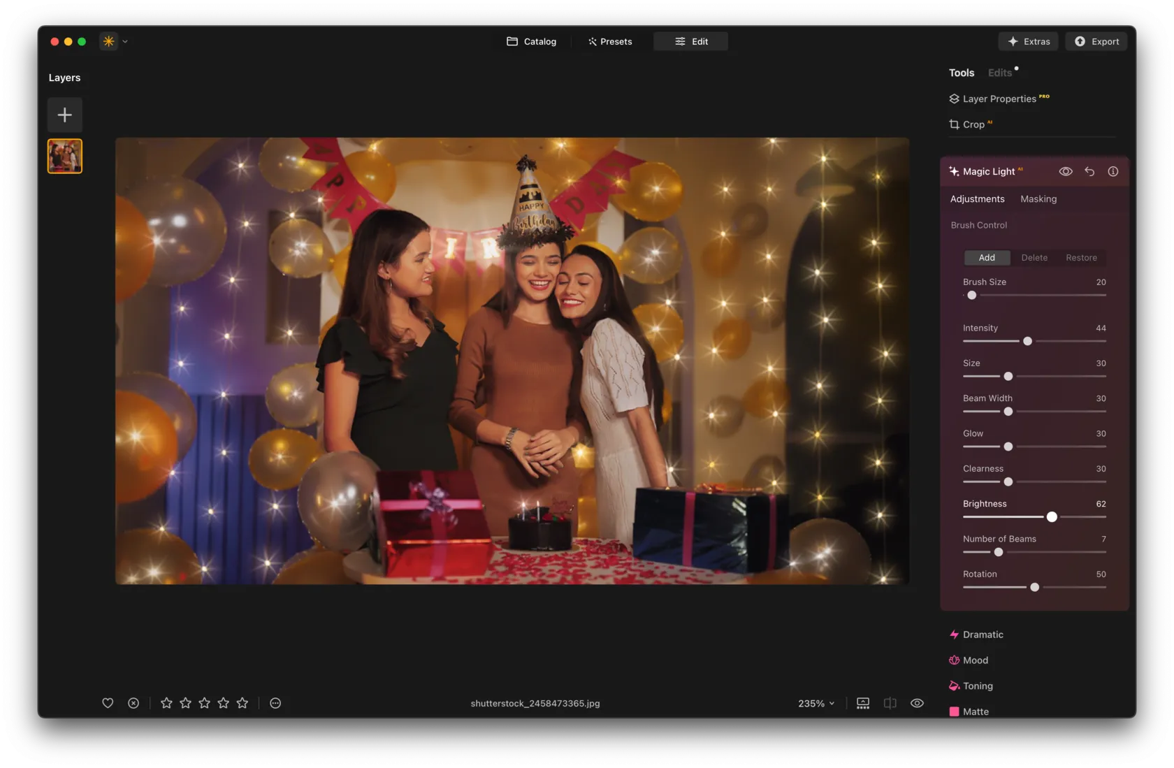 Did your lighting come out a little harsh or too dull? No problem. Just use their RelightAI tool to fix the mood instantly. What makes Luminar Neo especially great is that you don’t need to be a pro editor to make your snapshots pop. With just a few clicks, your photoshoot pics can go from “nice” to “wow, who took these?!”—and honestly, that’s the kind of energy your milestone deserves.