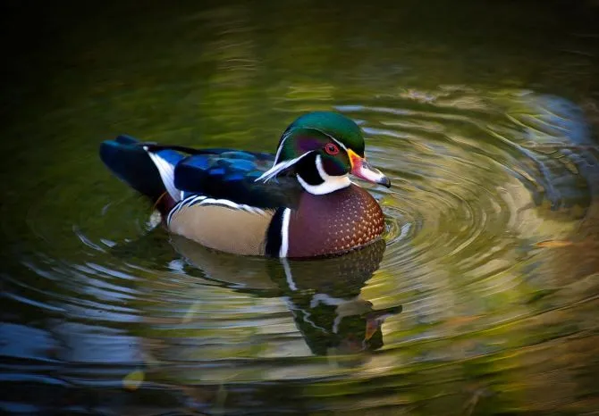 In this example of a lovely Wood Duck, I wanted to make some adjustments. Though there were some nice colors in this photo, I wanted to emphasize the ripples in the water and the patterns on the duck itself.