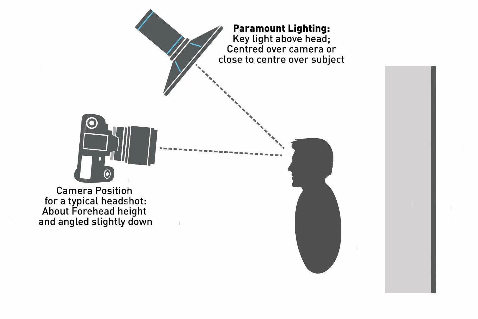 For clarity, take a look at this butterfly lighting diagram, and then we will discuss it in more detail: