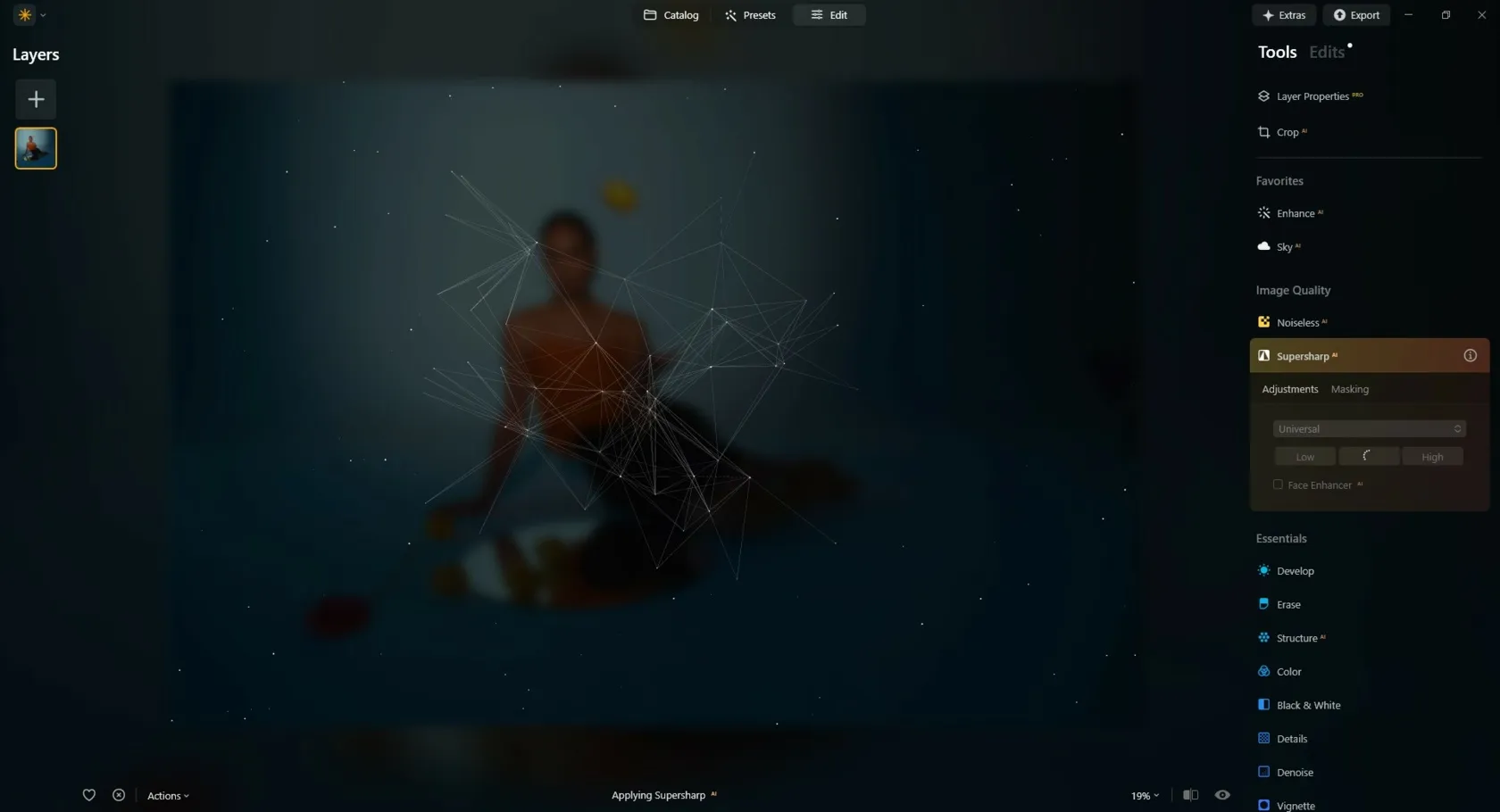 Proveďte úpravy pomocí nástroje „SuperSharp AI“ v Luminar Neo.