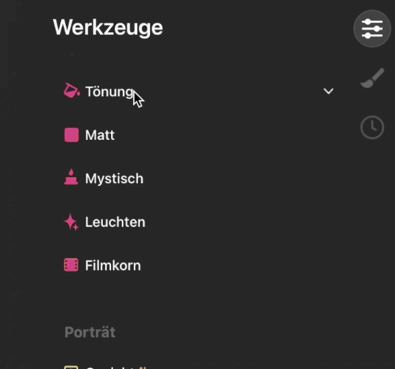 Das Tool Tönung hat jetzt Schaltflächen für Schatten und Lichter und ist dem Design der anderen LuminarAI-Tools angepasst.