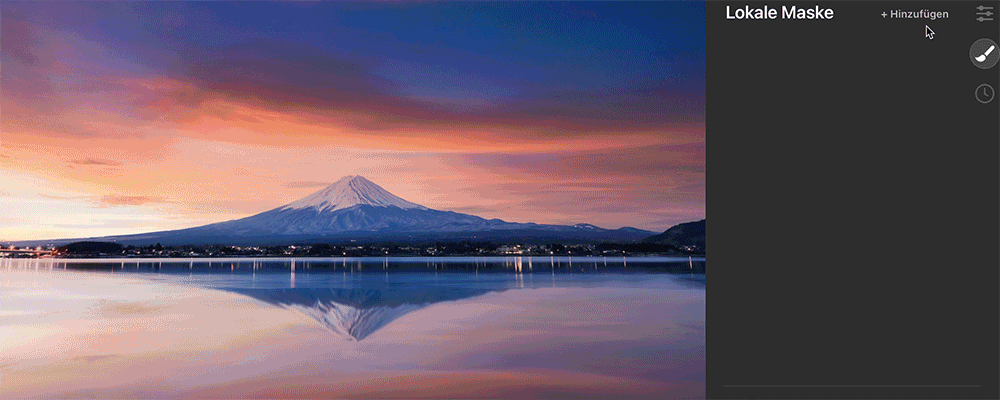 Mach dir keine Sorgen über die Anwendung der Radial-/Verlaufmaske in Vorlagen, da diese gespeichert wird, auch wenn das Tool minimiert ist