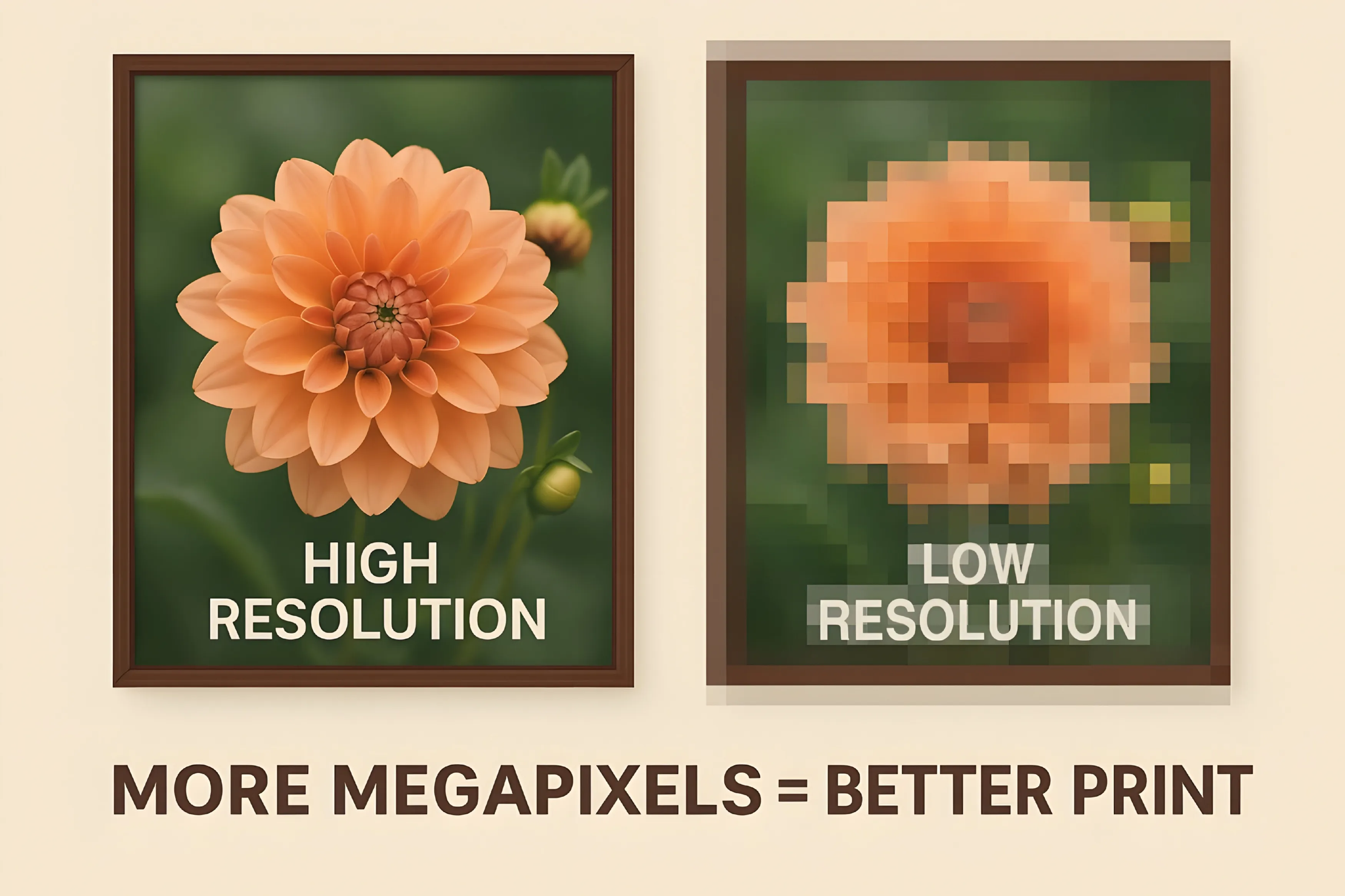And if you are not sure whether the detail is sufficient, pay attention to the original image. The more pixels, the greater the printing possibilities. This is the answer to the question «What are megapixels?»—how many millions of pixels are in an image.