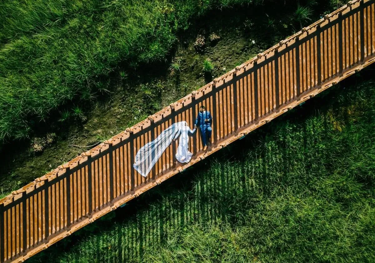 Often, drone photography is not in the main package. You’ll generally need to pay at least $800 for it. Just know that and be ready for it. Try to increase your wedding budget; drone photography is worth it. Especially when you minimize the risks.