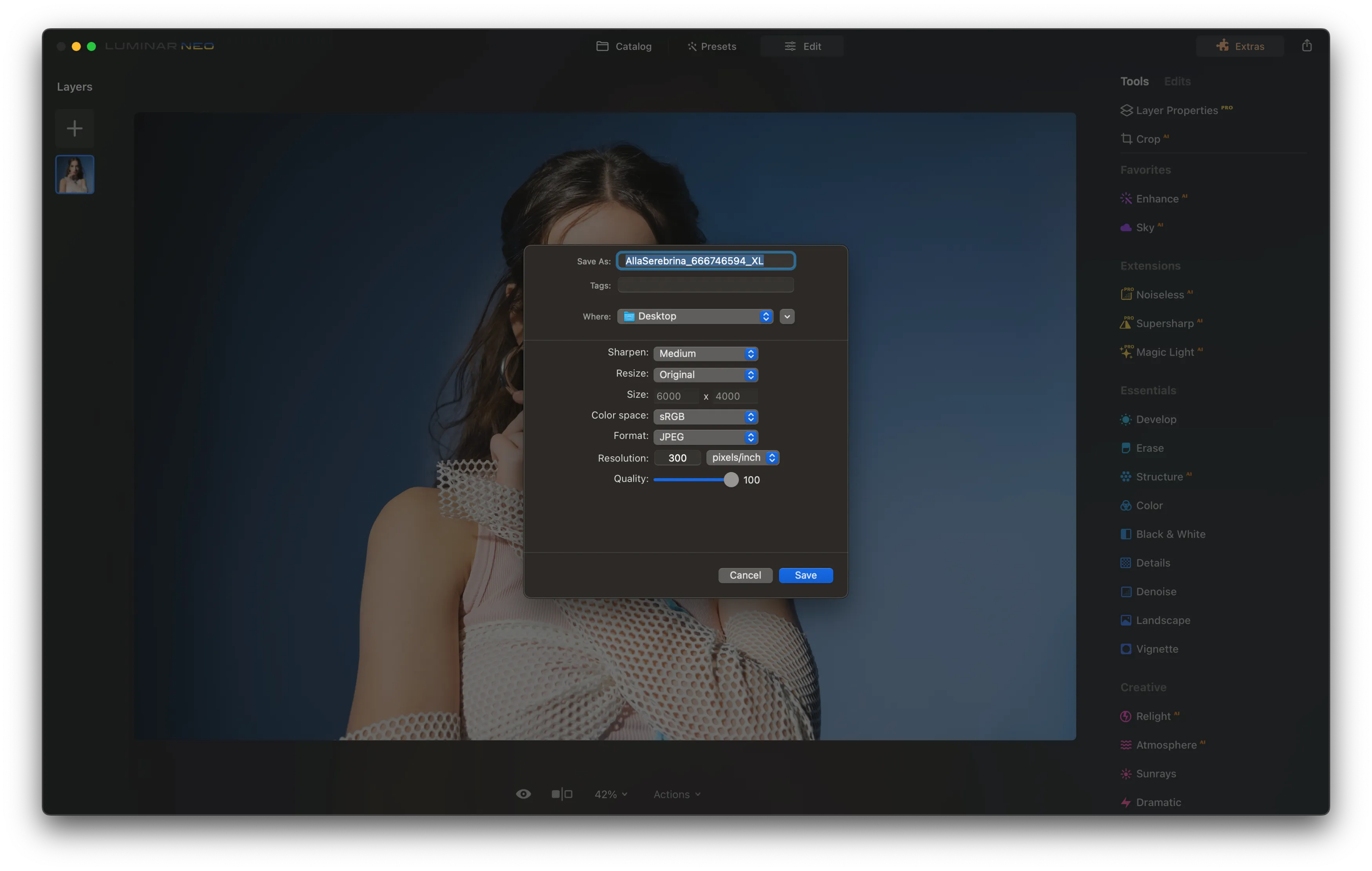 Step 5: Easy Exporting Your Photos in Luminar Neo