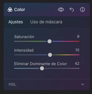 Aplicamos un poco de saturación e intensidad, para potenciar los colores.