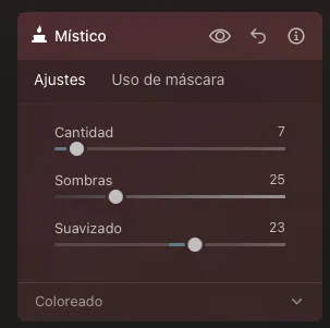Finalizamos con otro efecto, Místico. Con este consigo suavizar la luminosidad y aumentar el contraste. Crea un efecto de fantasía priorizando las zonas más claras.