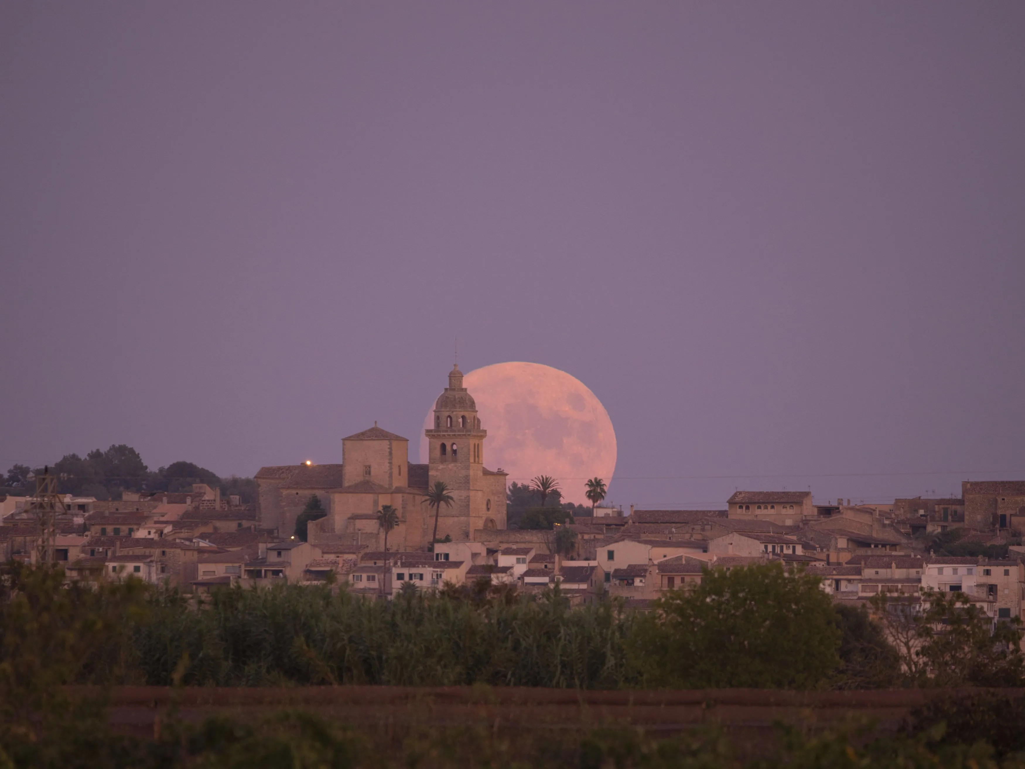 Vamos a practicar con esta hermosa salida de luna en el pueblo de Montuïri, Mallorca