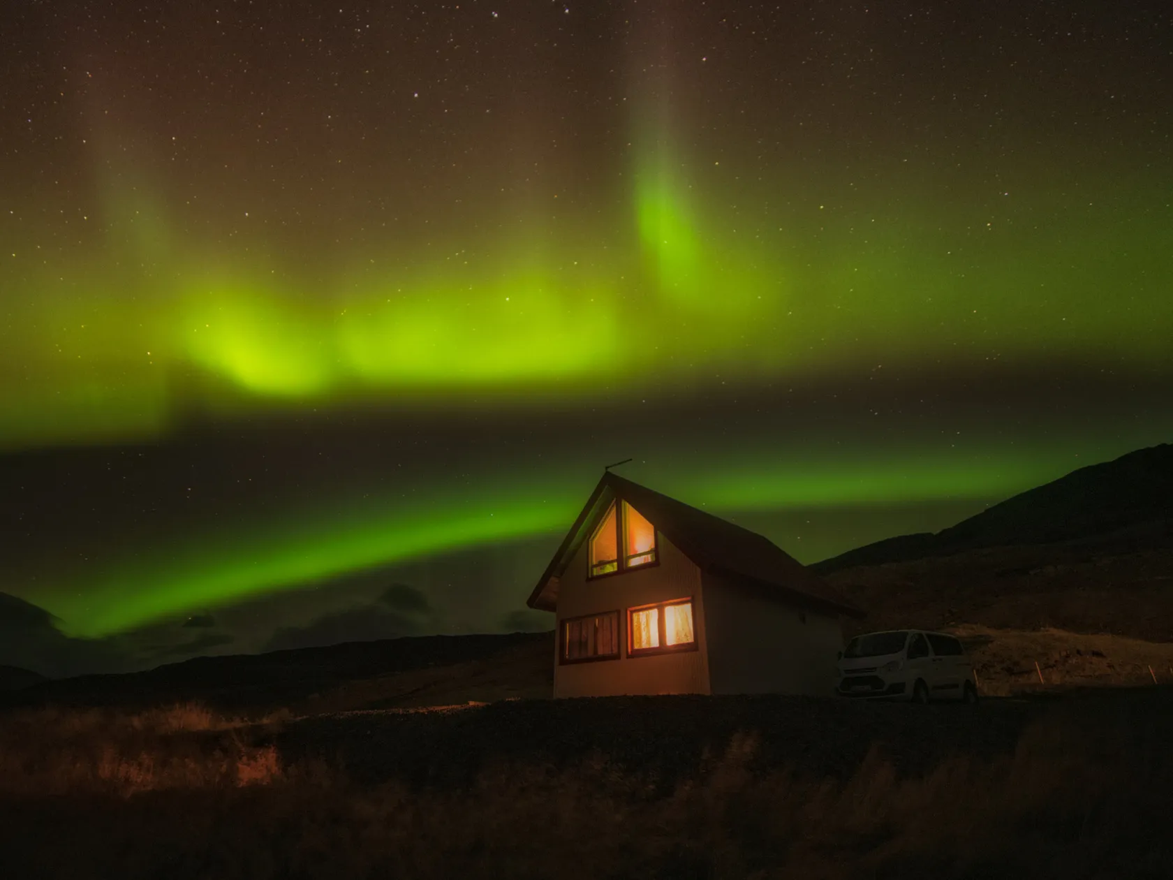 Kp-0 a Kp-2: En estos niveles de actividad geomagnética, las auroras suelen ser débiles y tienden a emitir colores verdosos pálidos. Estos destellos pueden ser difíciles de distinguir a simple vista y a menudo se ven mejor a través de cámaras sensibles.