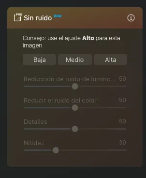 Luminar Neo ofrece herramientas de reducción de ruido mediante IA, que nos permite en fotografías como estas controlar el ruido. Esta herramienta analiza nuestra foto y aplica la reducción de ruido con tres niveles diferentes. Para esta toma he elegido el nivel Medio.