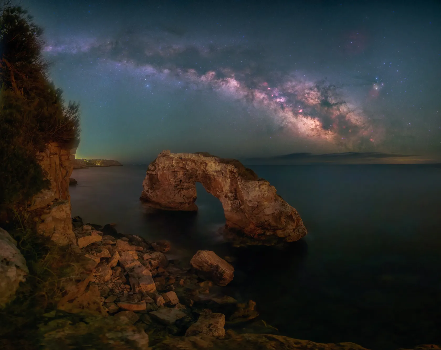 Incluye elementos en el primer plano para añadir profundidad e interés a tus composiciones. Árboles en silueta, formaciones rocosas o puntos de referencia pueden crear un contraste llamativo contra el telón cósmico