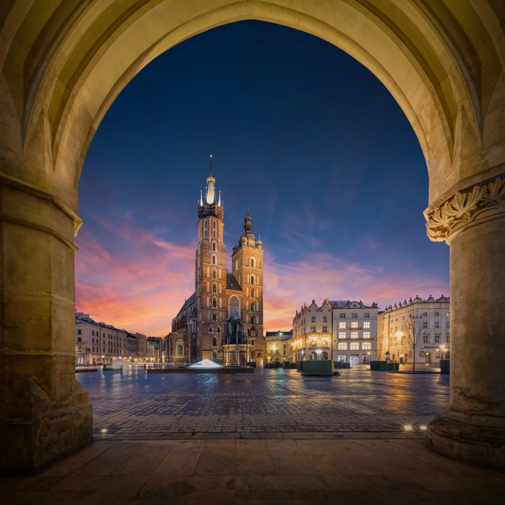 The town square is arguably Krakow’s most iconic shot, often replicated on postcards and souvenirs throughout the city’s gift shops. St. Mary’s Basilica is the iconic landmark in the city center, but consider retreating into the nearby Cloth Hall (Sukiennice) arches, which are excellent for framing the Basilica.