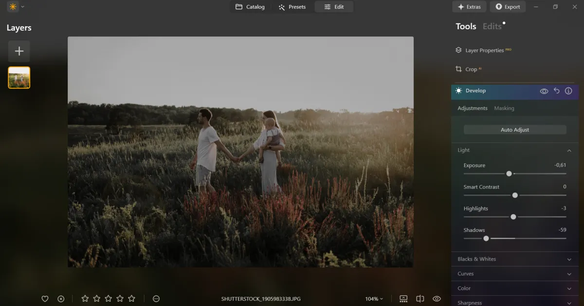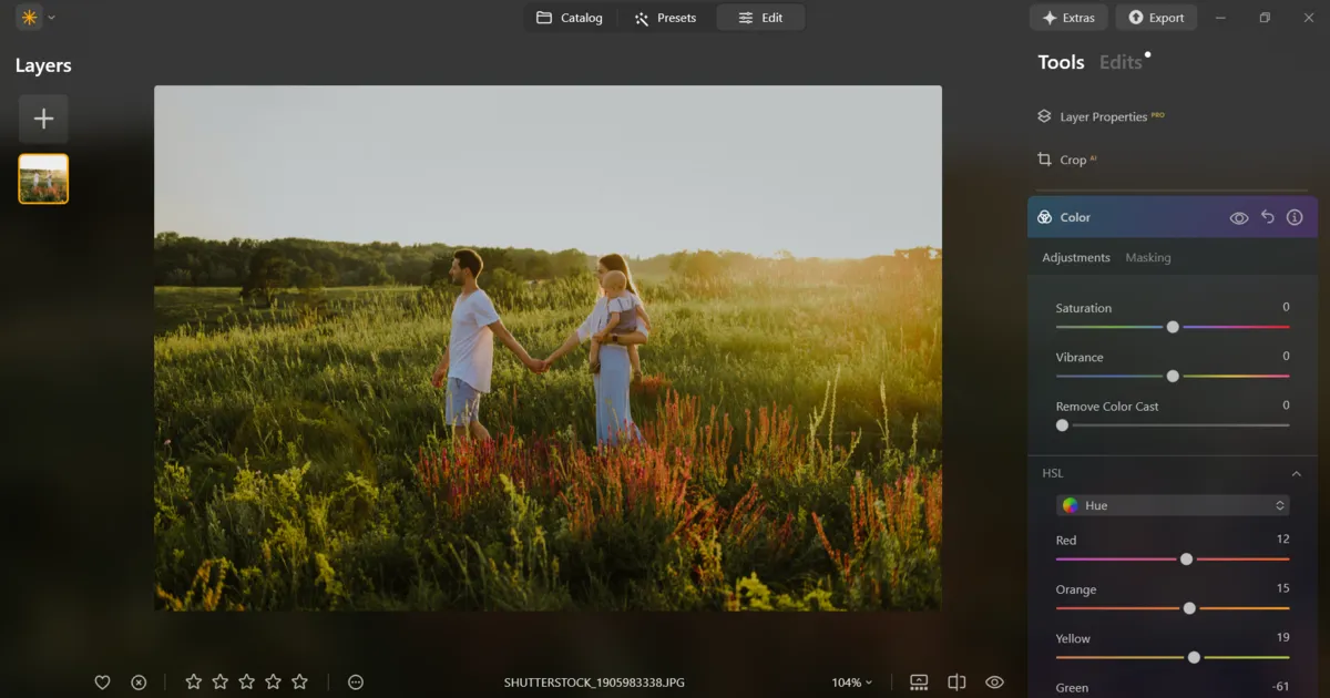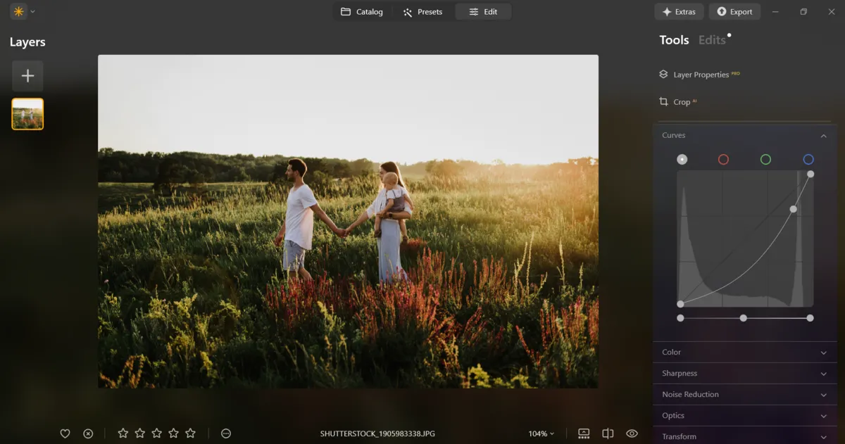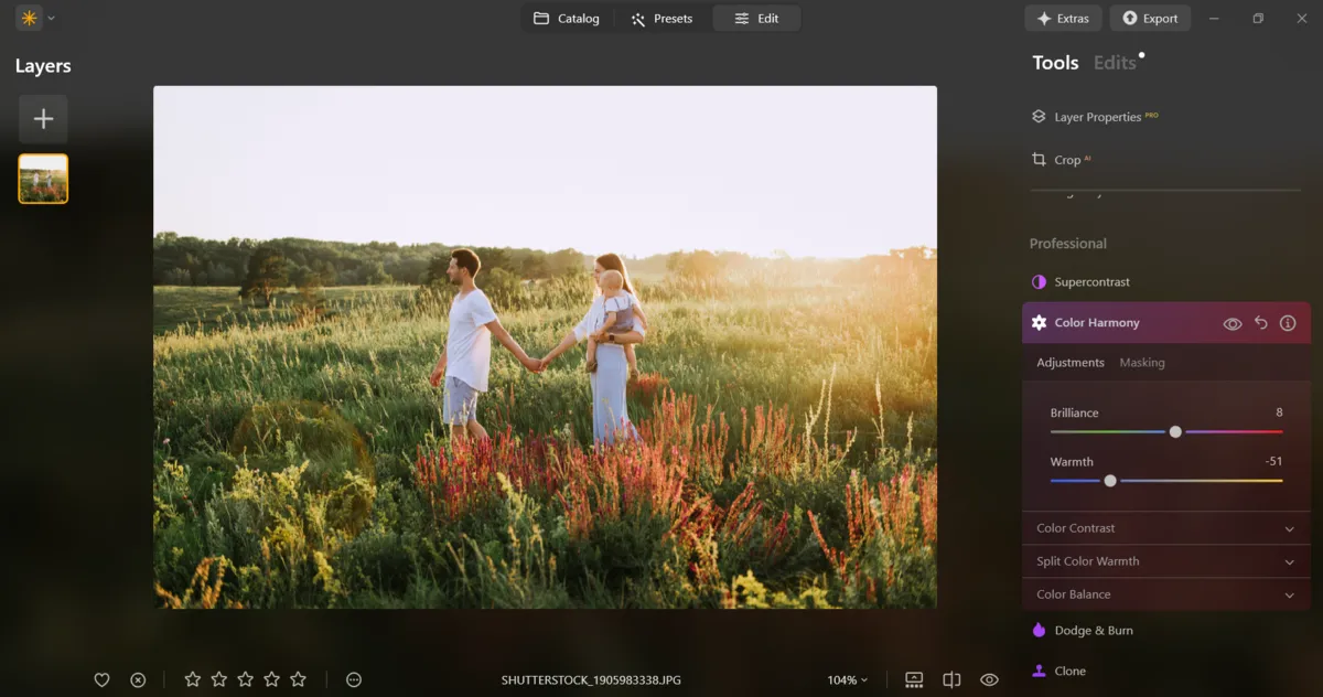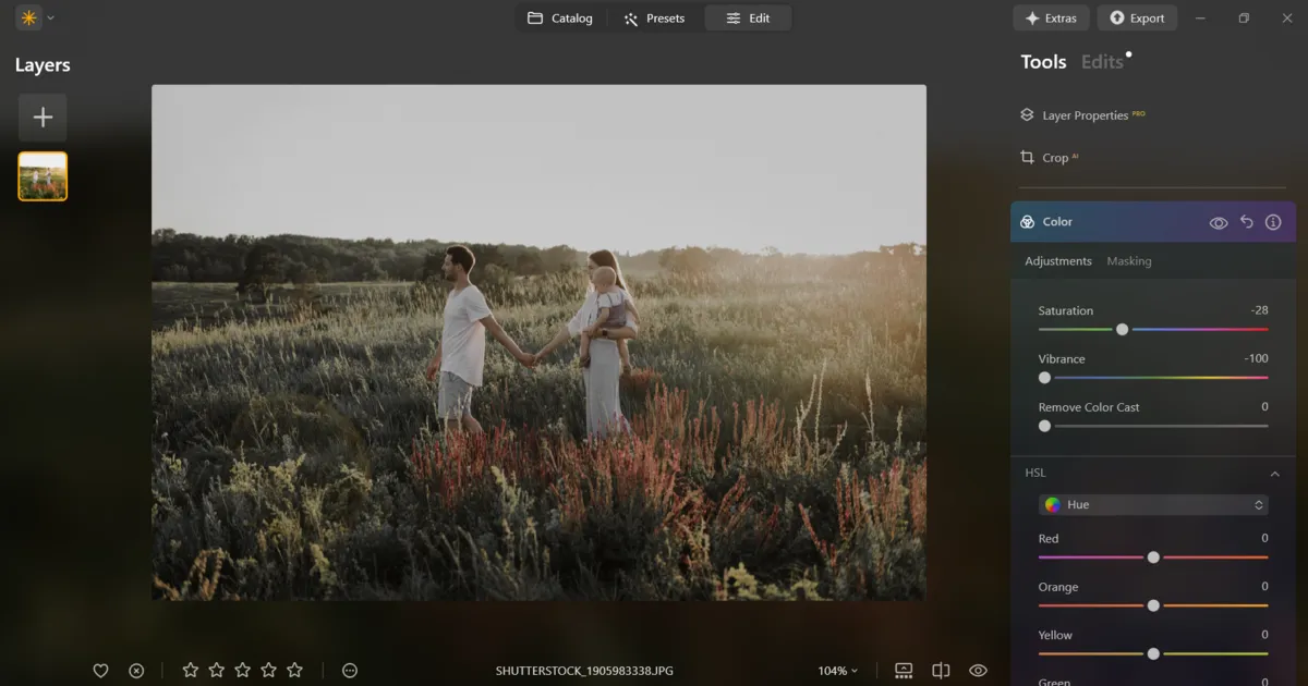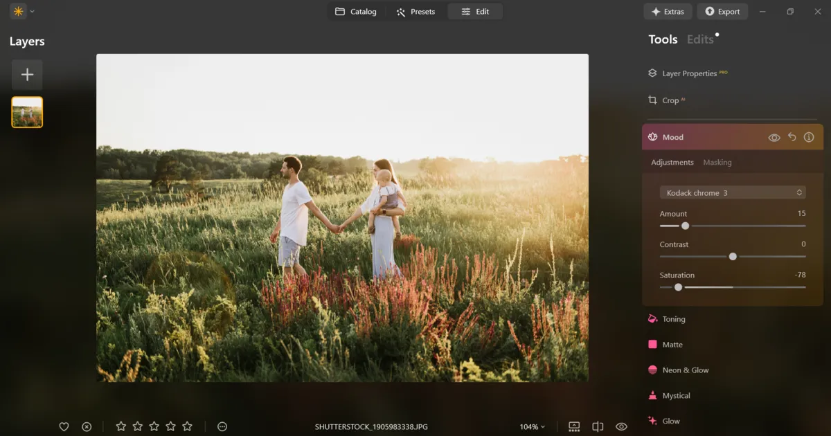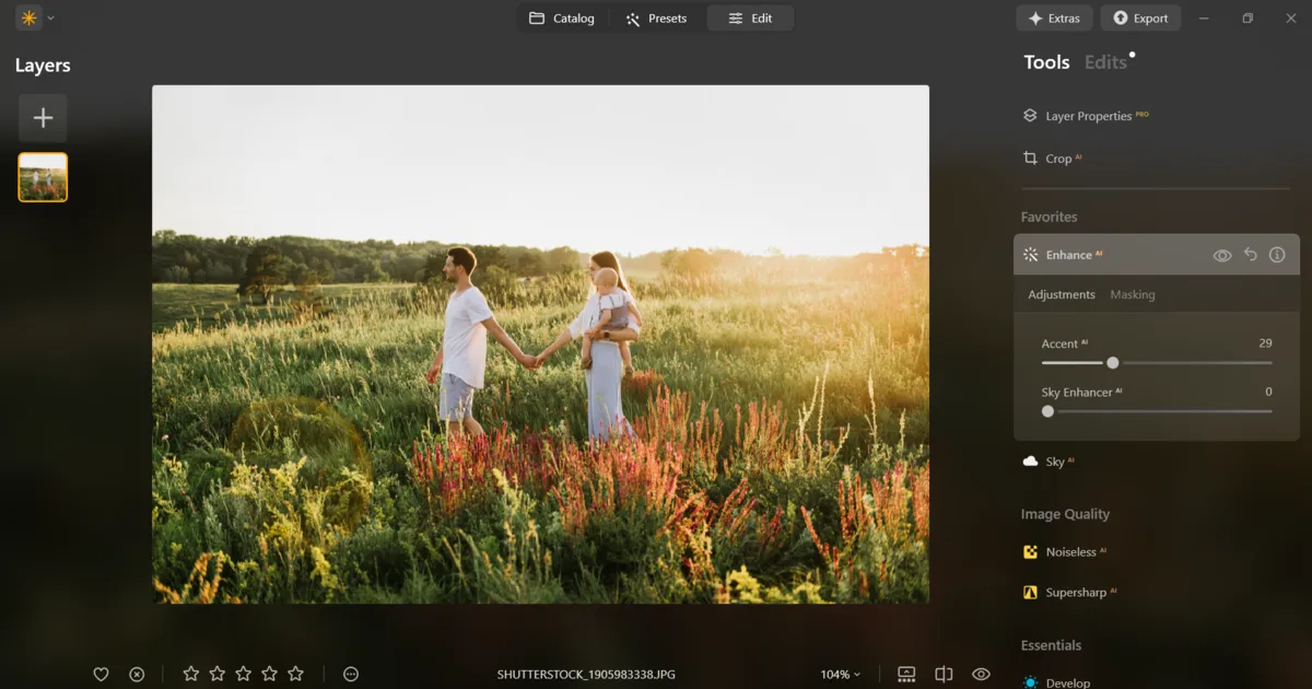 Editing isn’t just about correcting errors, it’s about giving your photos a consistent, polished look. Luminar Neo provides a variety of tools to help shape mood and atmosphere effortlessly. Its AI-powered features make quick, effective adjustments simple. For instance, Sky AI and Relight AI can transform the feel of a photo in just a few clicks, adding depth and life without extra work. You can also enhance the mood of portraits by experimenting with picture lighting effects, which add depth and warmth without overcomplicating the process. This is especially helpful in family professional photography, where you need to deliver a consistent, polished look across an entire gallery.