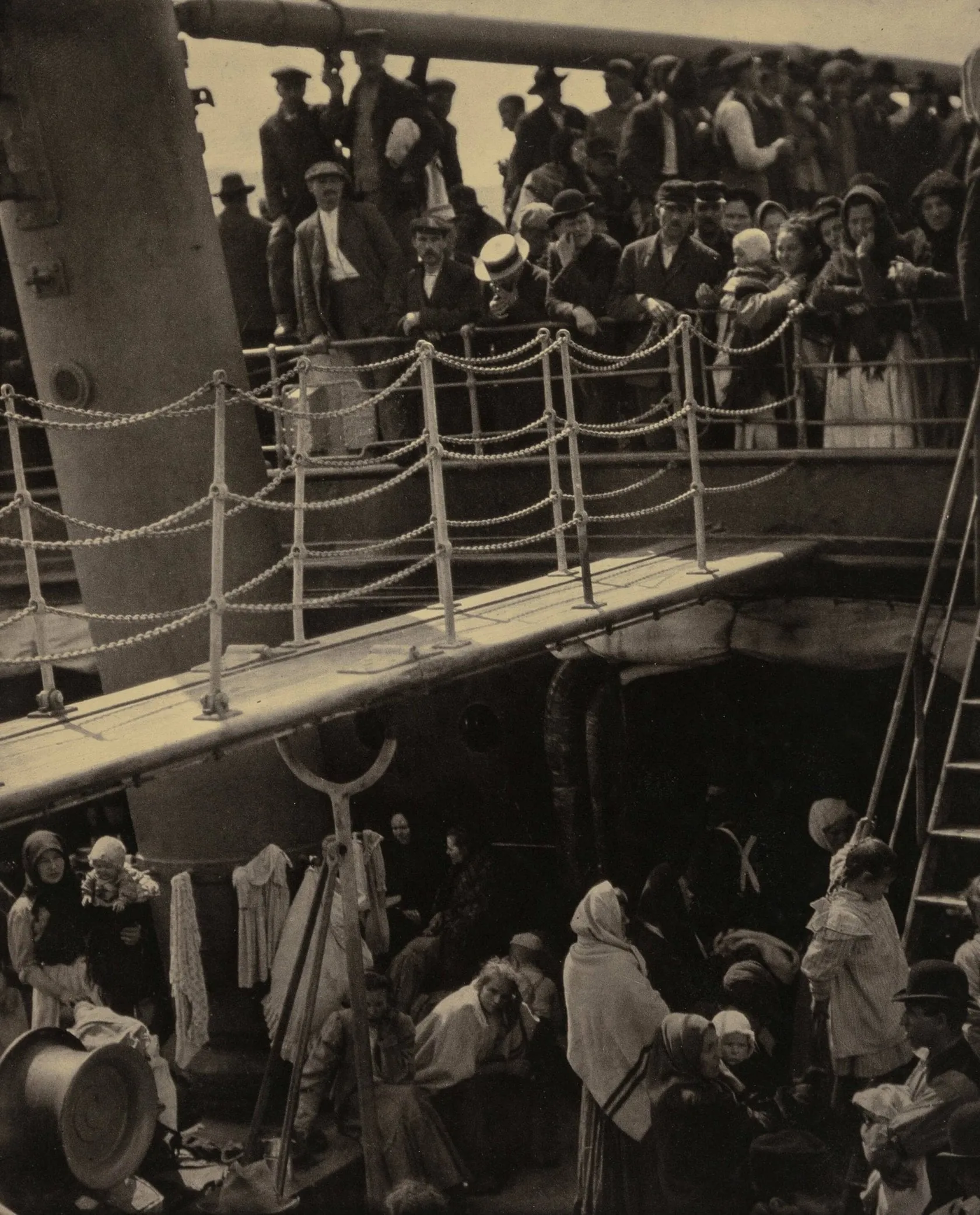 This photo shows us passengers on a ship from the USA to Europe and highlights the gap between social classes. Stieglitz captured this scene spontaneously, and it became famous, so it was even printed in a 1911 photography magazine.