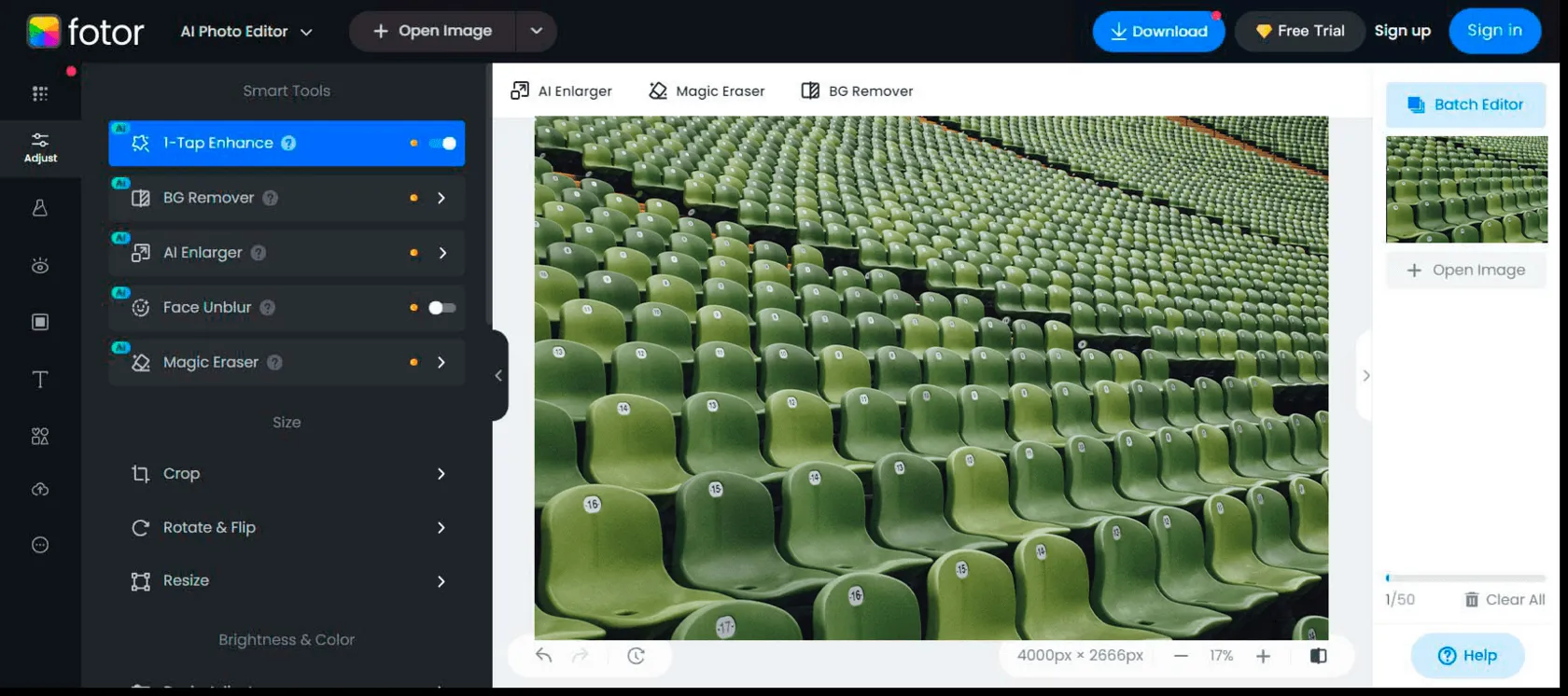 Fotor is a browser-based editor that combines AI photo enhancement with easy-to-use design tools. It’s ideal for beginners who want results fast without diving into complex workflows.