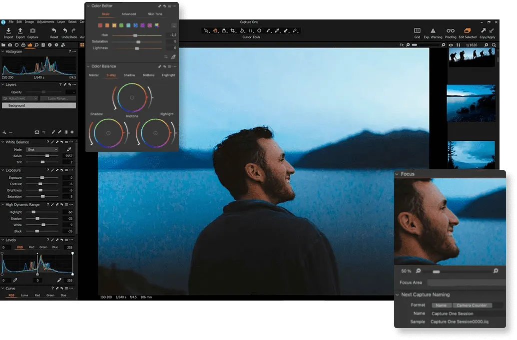 Capture One is a high-quality RAW image processing software. It is ideal for studio and editorial filming, focusing on collaboration, shooting, and color-studied mode.