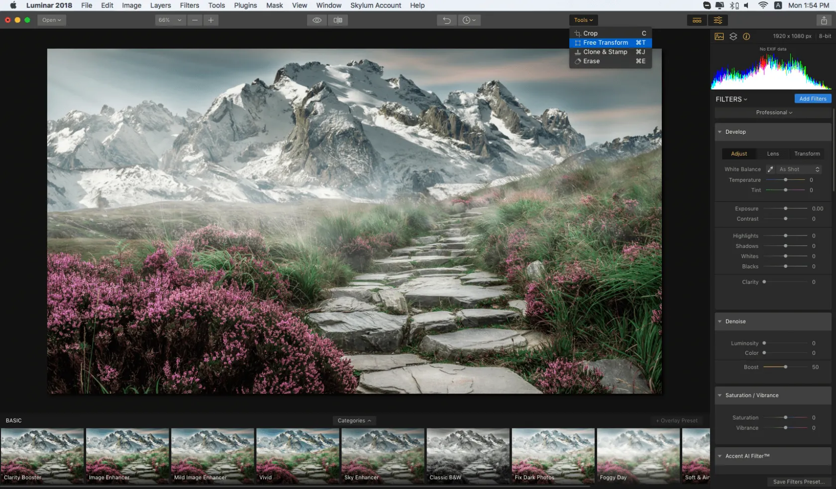 There is another important point. When you decide to print a photo or simply post a good shot to a social networking site, you need to edit it. Use the AI tools in Luminar Neo to get a better result. For example, you can denoise an image in a matter of seconds.
