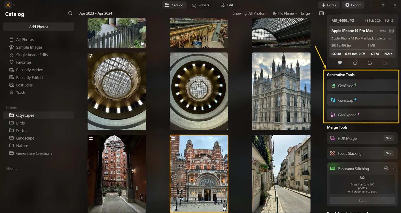 In the Catalog view, click on your image, then select “GenExpand,” which is located on the right-side panel.