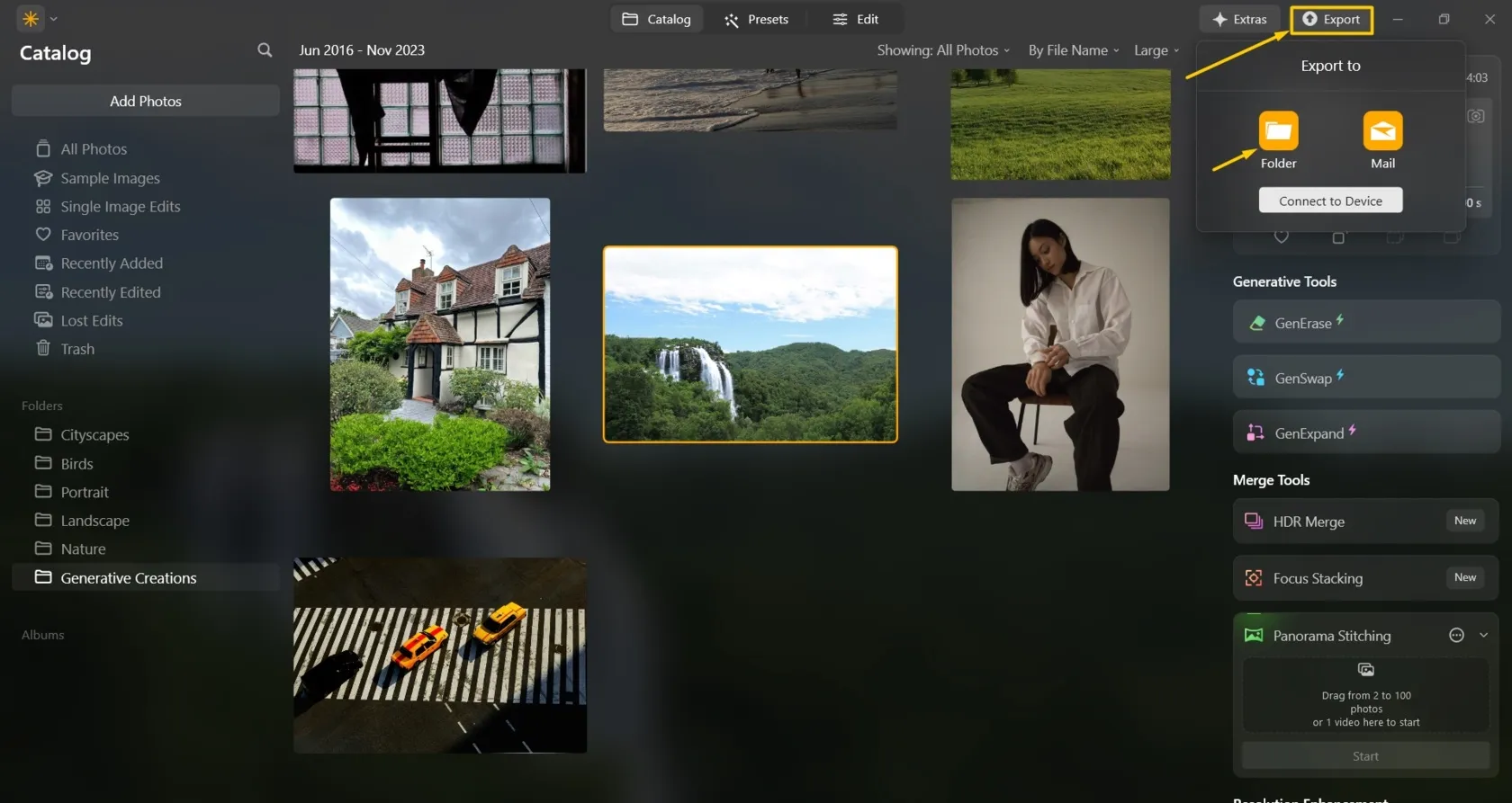 In the Catalog view, click on the image you want to edit, then select “GenErase” which is located on the right-side panel.