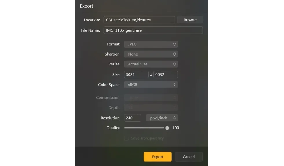 GenErase: As the name suggests, it erases unwanted objects from your photo. But it’s more than that! Did your model wear glasses, and later you noticed that the perfect shot was marred by glare on the lenses? No worries—GenErase can fix that for you.