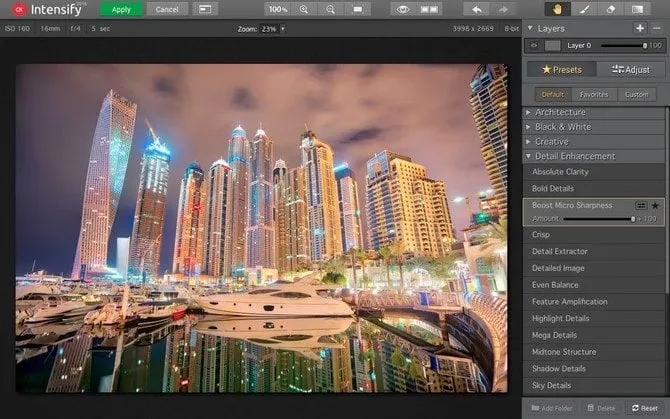 - Intensify – with this photo enhancer you can adjust the contrast and details of your images the way you like, or use various presets;