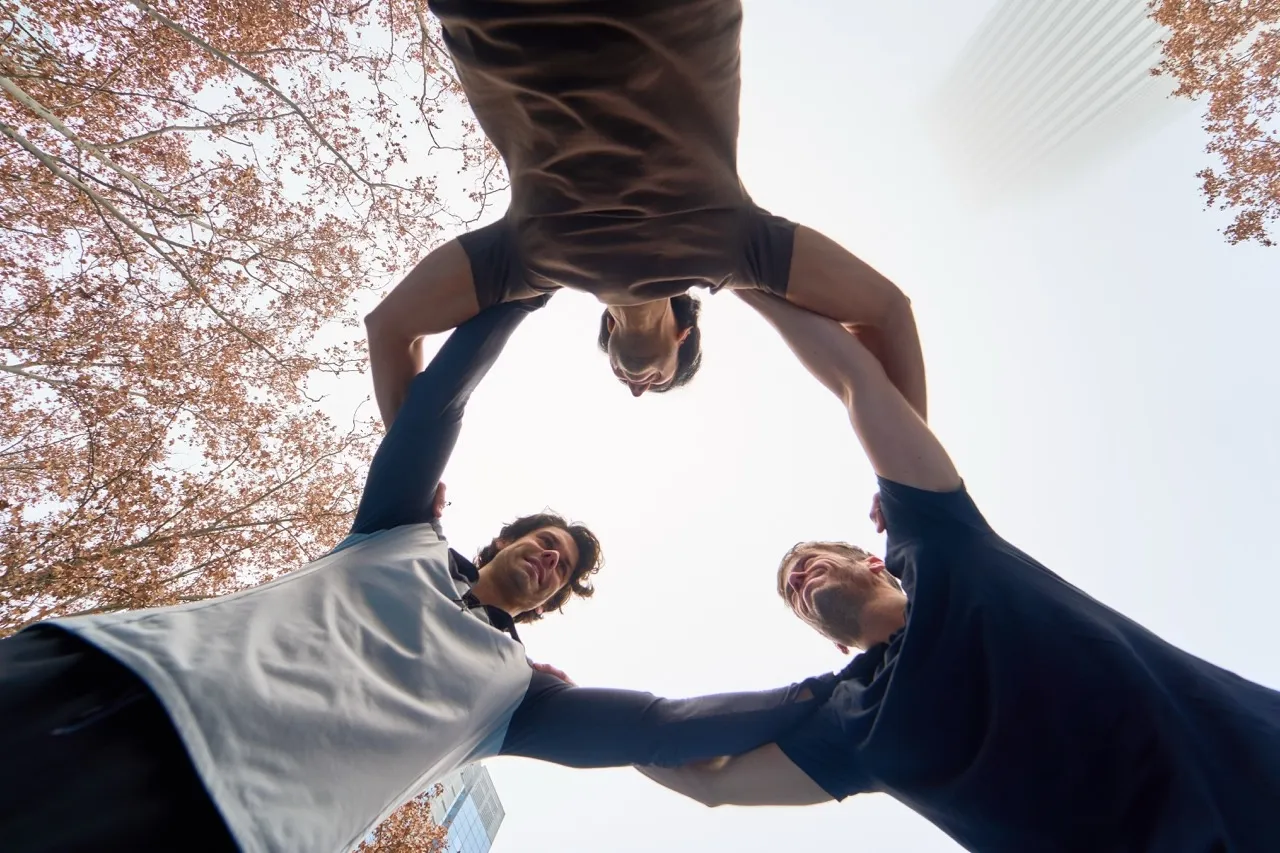 Instead of lining everyone up by height, arrange your group into shapes. Triangles work especially well for creative group photo poses—they bring balance, guide the viewer’s eye, and create a strong, professional composition. This technique is perfect for both friends group photos and family portraits.