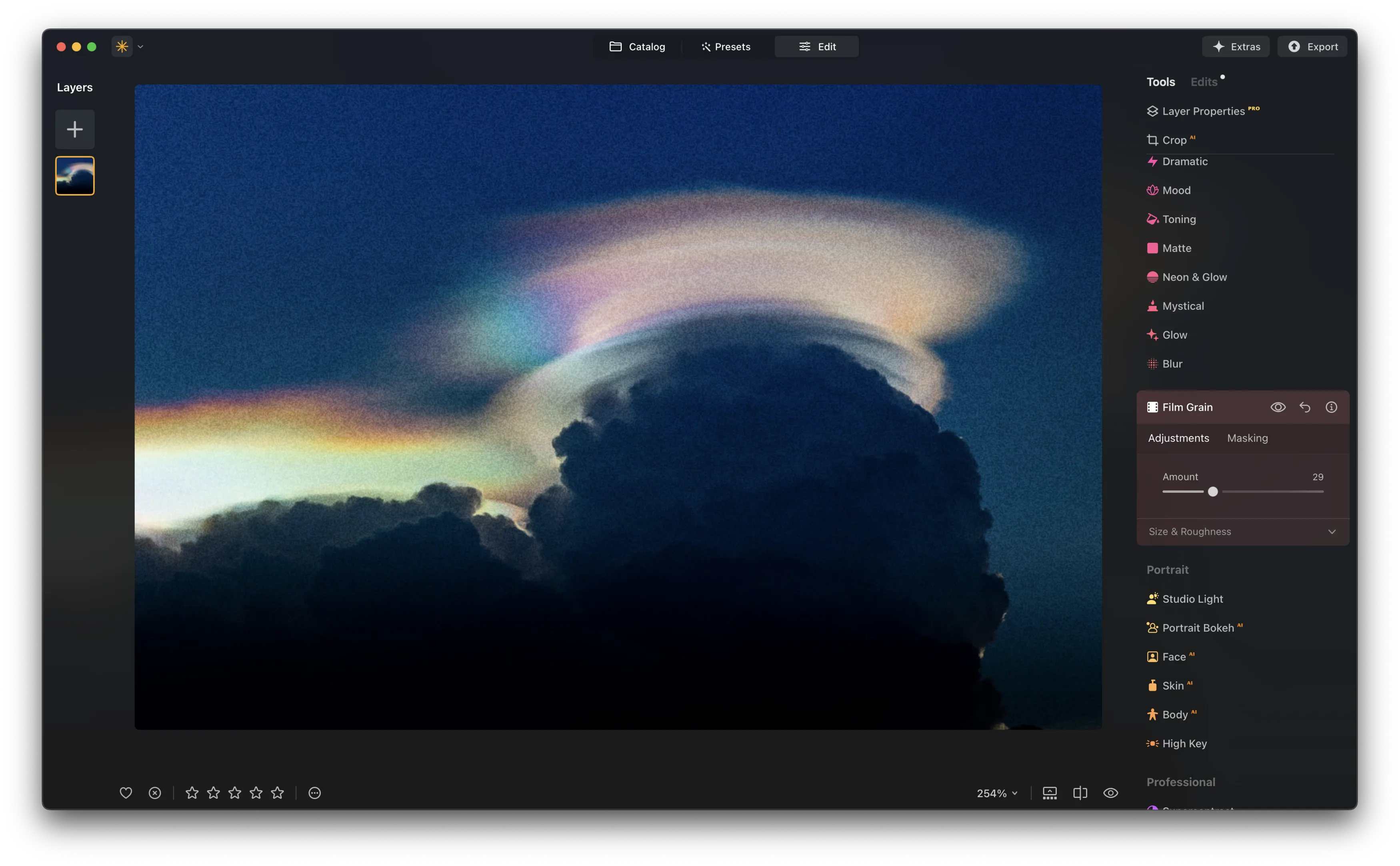 Open your image in Luminar Neo through the Catalog module (shortcut: Cmd/Ctrl + O);