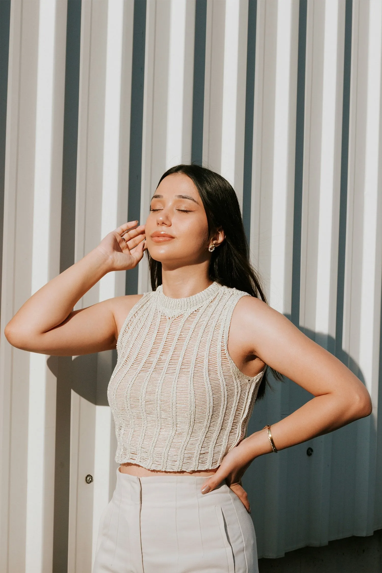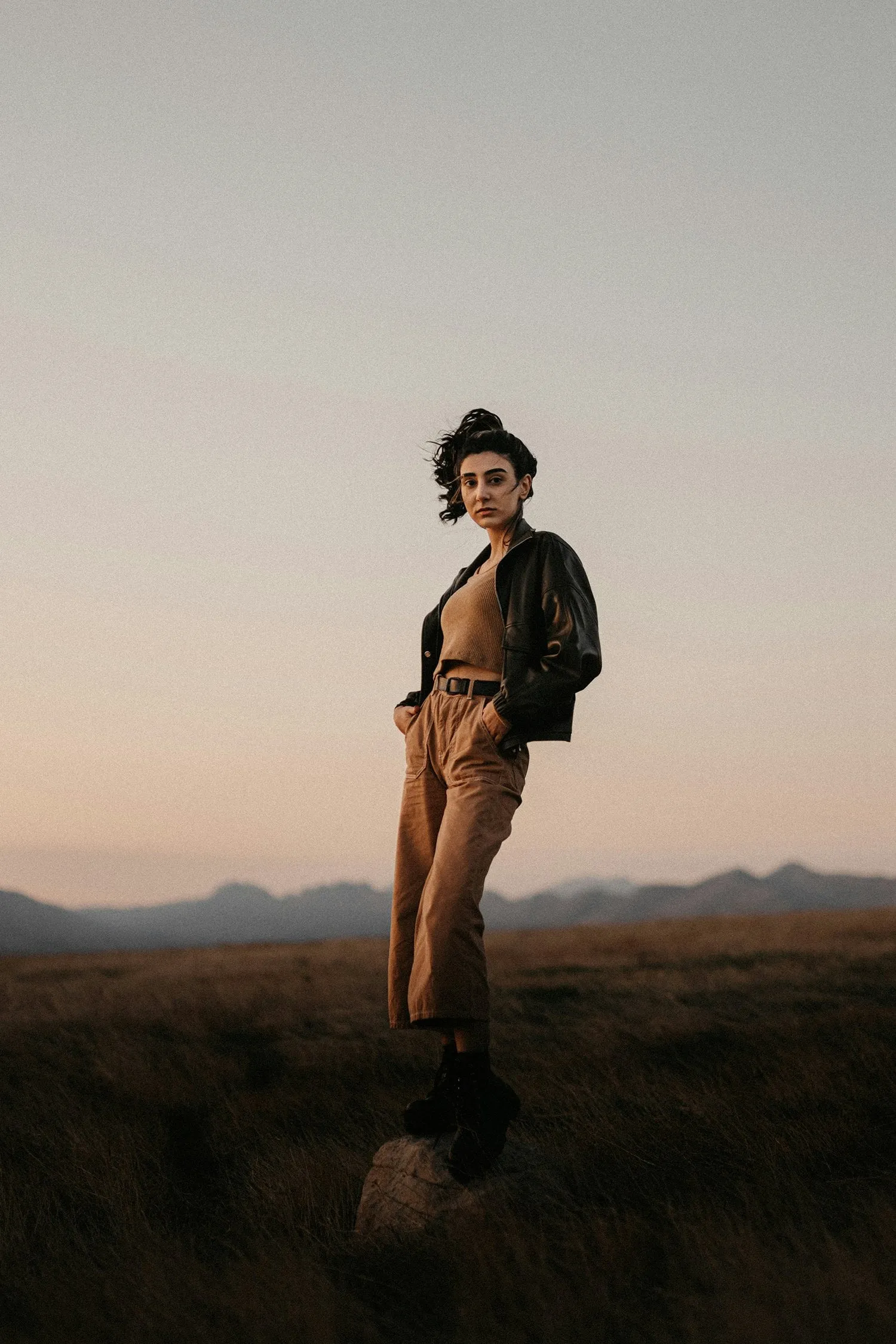 Additionally, harsh light can cause your model to squint if they’re directly facing the sun, so be mindful of their positioning, otherwise you can incorporate sunglasses into the look to solve this.
