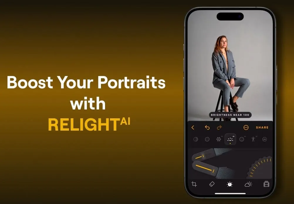 The standout feature of Luminar Mobile is Relight AI. It’s like having a dial to adjust the sunlight. If your foreground is shadowed or the background too glaring, Relight AI lets you balance the lighting across different areas of your photo. It intelligently brightens or darkens specific zones without affecting the overall ambiance, making every shot look naturally lit!