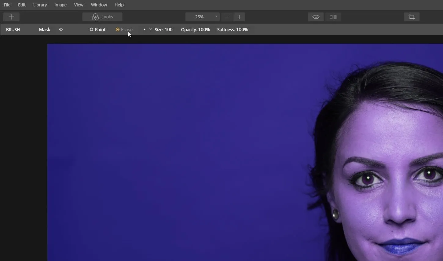 We still haven’t got the final result. So, how to change the background color of an image? Change the mask settings to Erase and set the opacity to 100 percent.
