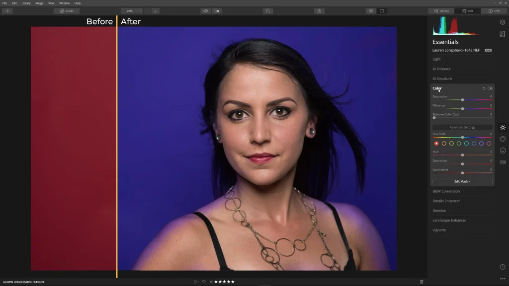 Selecting a background color for a portrait isn’t always easy. Sometimes you don’t have a choice and are forced to use what’s on hand. In cases like there, here’s how to use Luminar Neo’s Color tool to target a specific color enabling you to change it.