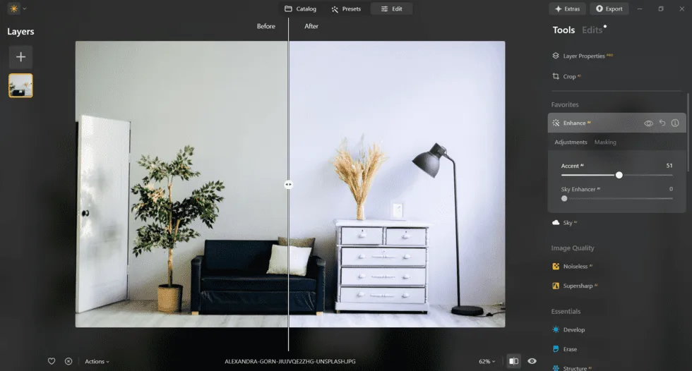 With tools like these, Luminar Neo redefines the ease and effectiveness of photo editing for real estate, making it possible to achieve professional-quality results in just a few seconds!