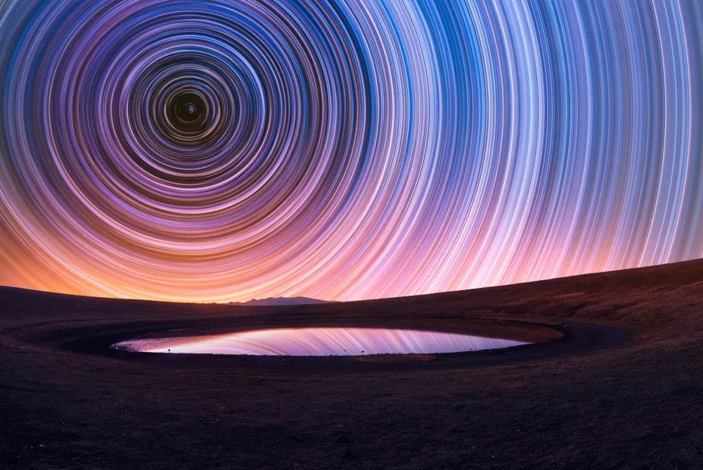 National parks, countryside fields, mountain areas, or beaches often work well. Apps like Dark Sky Finder or PhotoPills help you scout the best areas. Aim for a clear, moonless night. You’ll get the most stars and the cleanest trails when the sky is darkest. New moon nights are ideal.