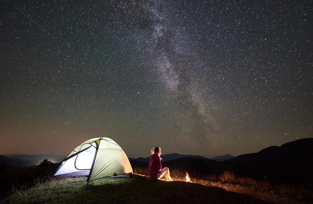 Location matters a lot. Light pollution from cities will drown out the stars. Find a dark, open space where the sky dominates.