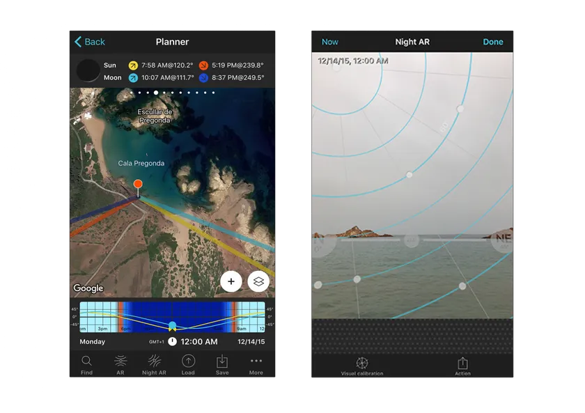 Once you’re at the location, use the PhotoPills Night Augmented Reality (AR) view to make sure that you’re at the right shooting spot you planned.
